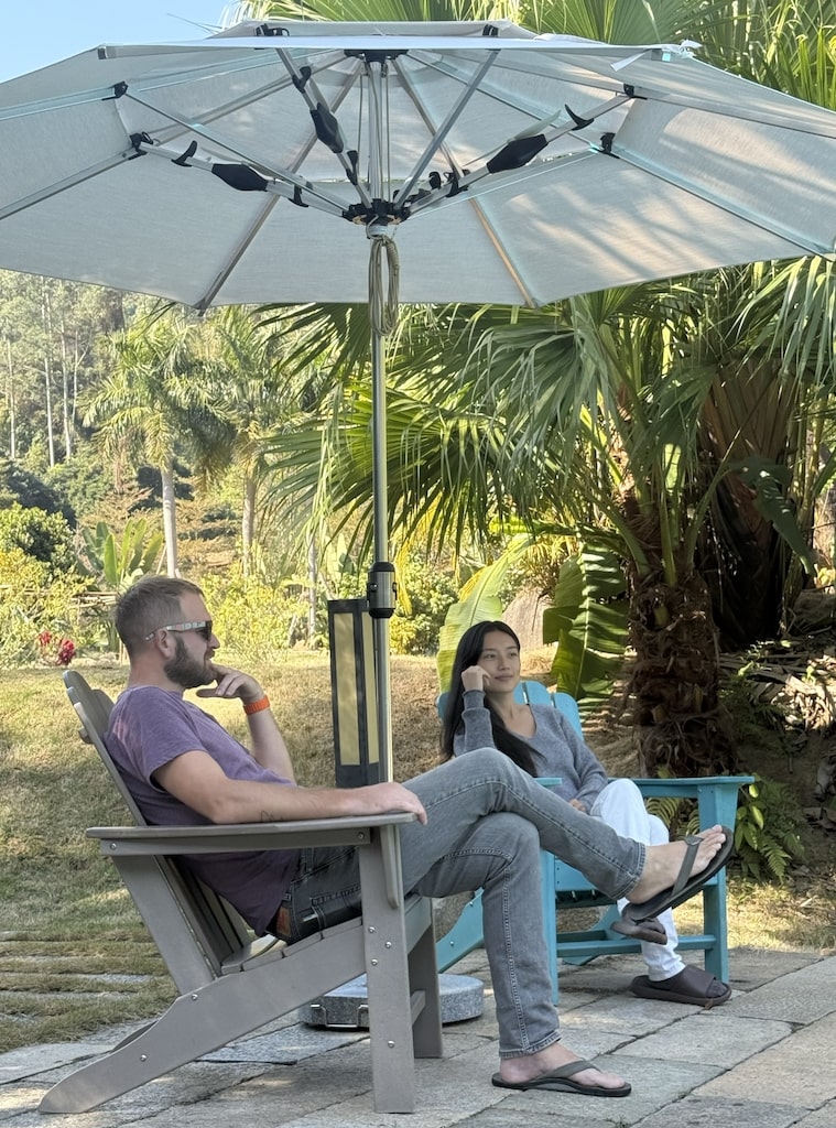 One of my favorite things about the Alizé Umbrella is how easy it is to live with. There’s no setup hassle — the fans and shade are fully integrated, so you just open it, press a button, and enjoy. No separate fan to assemble, no cords to hide, and no maintenance headaches.